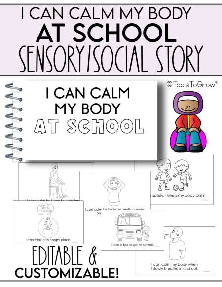 This Sensory Social Story Includes: 38 Different Story Pages and Social/Sensory Strategies. Personalize title page. Simply print, select pages and place in the correct sequence in the story book. Once all pages are properly arranged, staple on the left. Enjoy reading with your child!