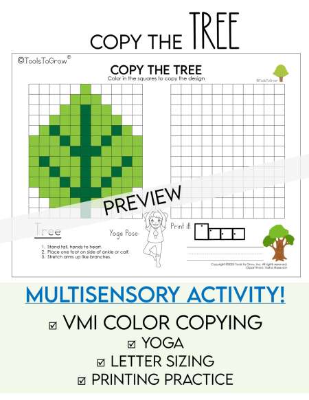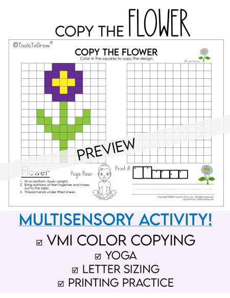 Includes: VMI color copying, yoga, letter sizing, and printing practice