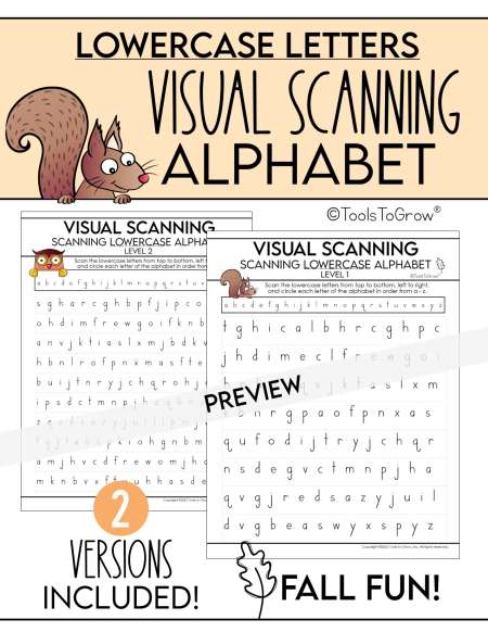 Scan the lowercase letters from top to bottom, left to right, and circle each letter of the alphabet in order from A - Z. 2 versions included!